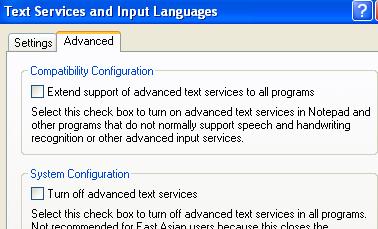去掉关闭高级文字服务的选项框