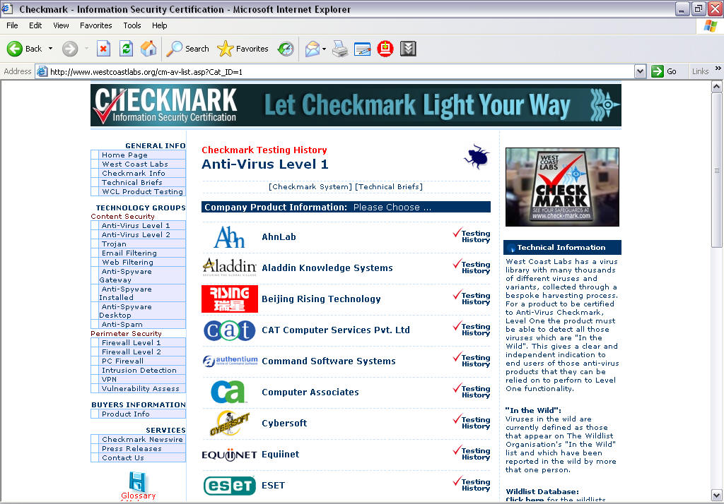 描述:Level 1的评测,表明该产品可100﹪检出样本中的流行病毒(www.wildlist.org)。