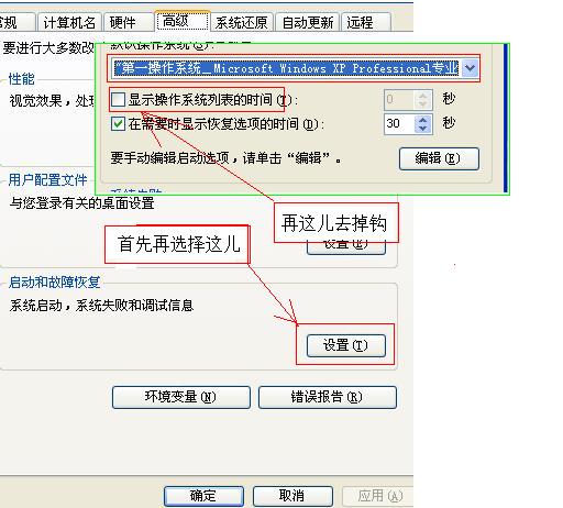 在“桌面”→“我的电脑”→“属性”→“高级”卡→如图所示