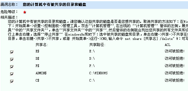 以上是在关闭IP$~C$~D$等磁盘分区的默认自动共享修改注册表以后再用批处程序执行一次即将删除默认自动共享的磁盘分区和目录。