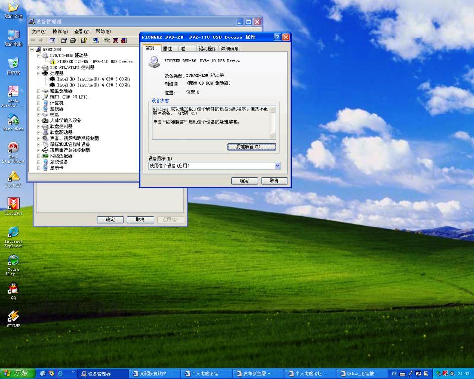 XP下设备管理器里光驱栏打着黄底黑色的感叹号,属性里写着