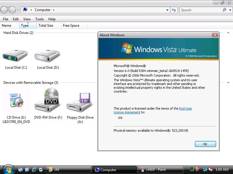 可惜啊是英文版,所以不能进行详细的设置,,得知VISTA要512M的内存,所以昨天晚上向对面柜台的人借了条512M的内存来试试,,,听说有中文版,可惜在网上怎么找都找不到,,