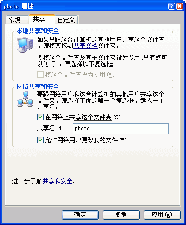 Windows XP Home版为共享文件夹设计了一种微软称之为“简单文件共享”的技术。打开任意文件夹“属性”对话框的“共享”选项卡,如图一所示,可以看到这里的选项与以前的Windows大不相同。虽然通过图一的对话框可以禁止用户修改共享文件夹里面的文件,但缺少其他版本的Windows都提供的授权选项。