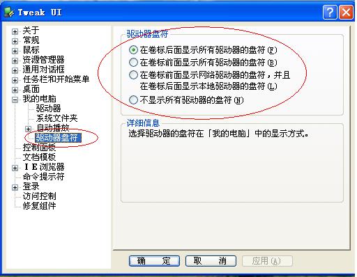 下载这“TweakUI.exe”个软件,可以恢复你的驱动器图标,参见如下图所示: