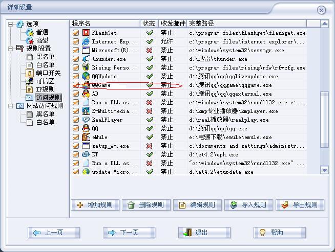 上QQ游戏也不必关闭防火墙啊,也不必删除与QQ相关的规则,最简单的方法是放行QQ游戏规则.见图.
