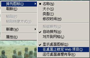 在桌面空白处单点右键---专向排列图标---将锁定web项目前勾去掉即可