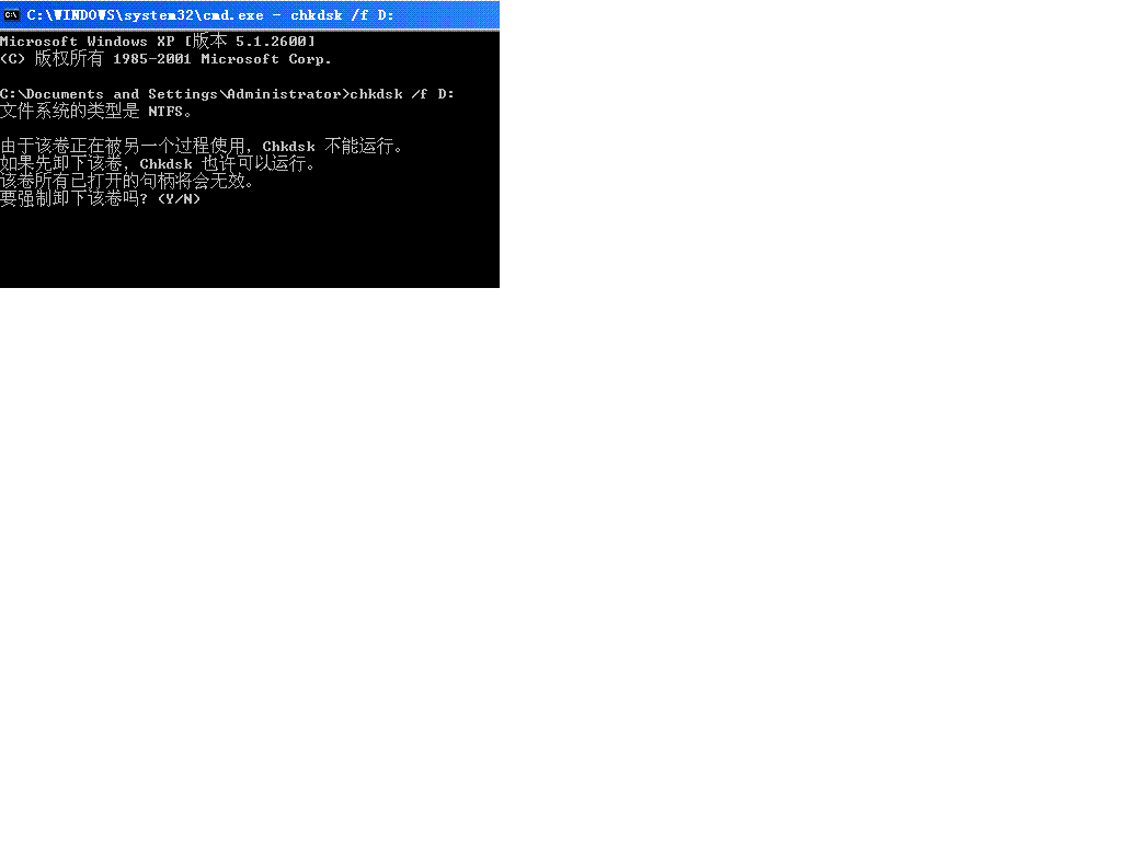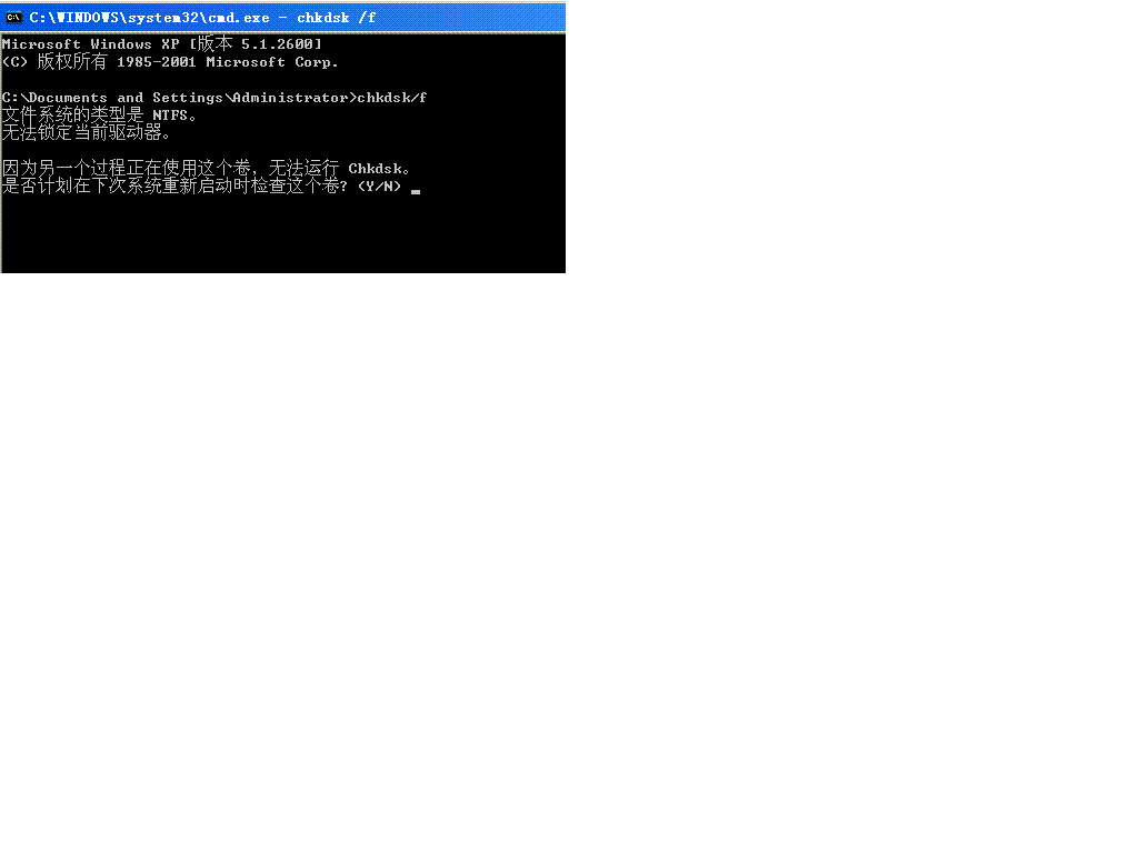 然后再到 开始-》运行-》cmd 》 chkdsk /f 》 y 》回车
