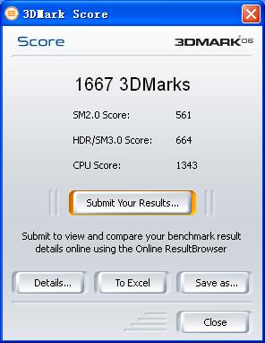 我是华硕EAX1600PRO/TD/512MB,分数是1667