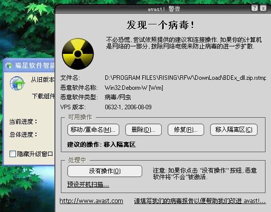今天升级瑞星防火墙,avast!提示下载文件有病毒,为什么?