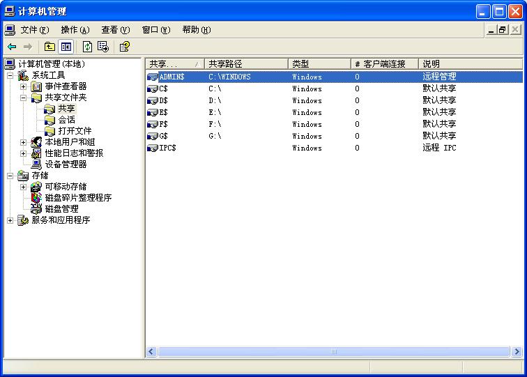 取消Win2000/XP每次开机的默认共享(如:C$、D$等)