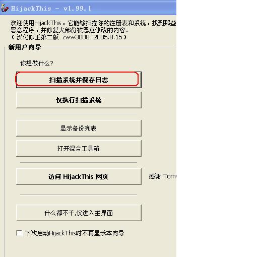 请问下载HijackThis1991zww.exe后,怎么扫描日志?谢谢