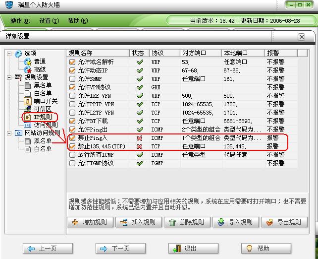 在瑞星设置的防火墙IP规则里设置一下,参见下图红框所示设置一下,