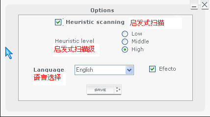 OPTION-包括语言选择和启发式扫描及级别选择。