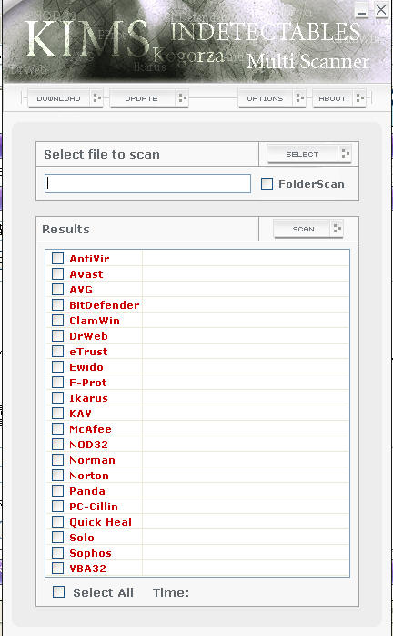 3)然后进入主界面,点击SELECT,然后选择1个待扫描的文件或勾选FolderScan(文件夹扫描)
