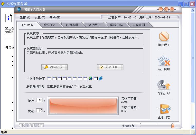 双击瑞星防火墙出现一个找不到服务器的窗户是怎么回事呢?[