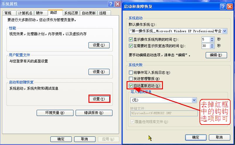 关于关机的问题试试鼠标指到→“我的电脑”击右键→“属性”→ “高级”→ “设置”如图所示