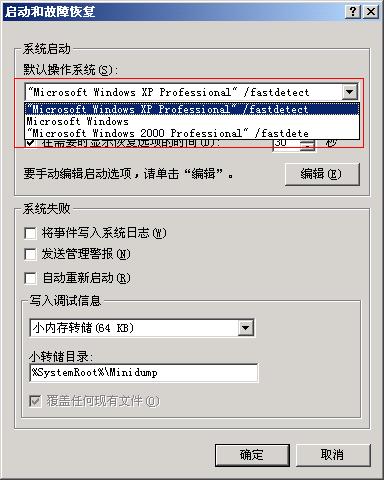 桌面——我的电脑——右键——属性——高级——启动或故障恢复