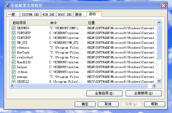 是什么意思啊?你的系统启动项目太多?可以只保留杀毒软件和输入法其它都可以关闭