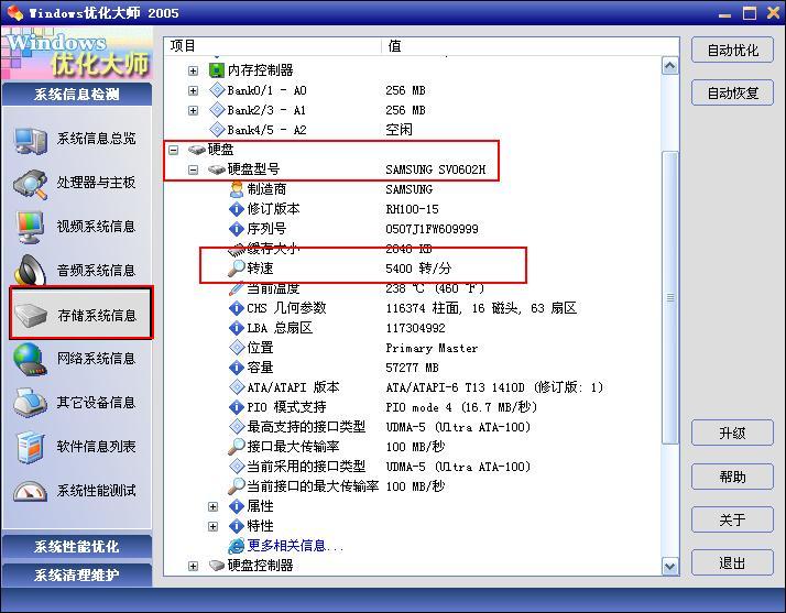 高手们:用什么软件可以测试出硬盘的转速是7200转还是5400转?