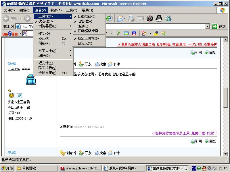 刚刚发现,不知什么时候IE浏览器的状态栏不见了??该怎么恢复呢?