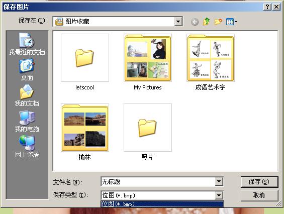 重新打开IE或者重新启动电脑原来还可以恢复正常,现在不能了,只能打开“画图”工具,把.BMP的图片打开另存为.JPG格式,再打开.JPG格式的图片,这样当保存IE上的图片时就增加了.JPG格式,同样的方法可以增加.GIF等格式。为什么?