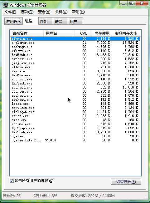 打开任务管理器以后..里面没有用户名的显示了...如果中了木马可麻烦了..谁知道该怎么让他出来.."查找--选择列--用户名"已经勾选了..可还是不行...