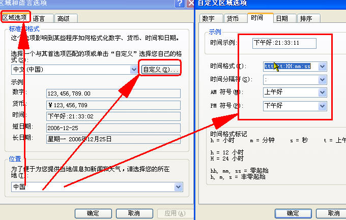 在控制面板中打开“区域和语言选项”→参见下图红框所示→