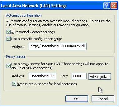 但是,有时防火墙客户和Web代理客户的访问通过ISA防火墙中转会出现问题,最常见的场景就是回环访问。防火墙客户或者Web代理客户通过ISA防火墙回环访问位于和自己相同本地网络中的服务,此时,你应该配置防火墙客户和Web代理客户的直接访问,即跳过ISA防火墙直接进行访问。