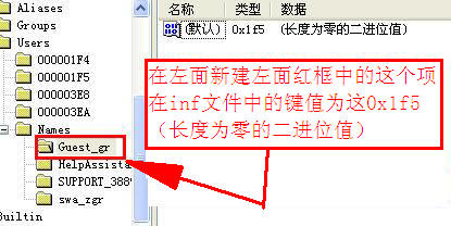 我是想通过inf文件修改新建立一用户名:随意给它一个名比如:abc,它在来宾帐号中就是用户名为“abc”的用户名了,
