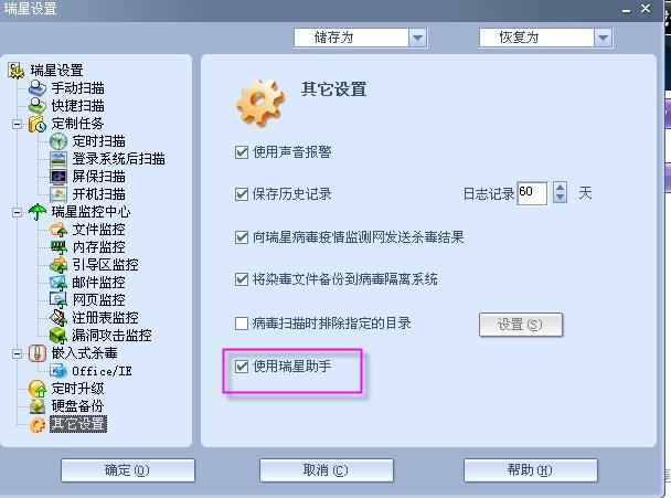 点什么才出来?是否在设置,详细设置,其它里勾选了使用瑞星助手?