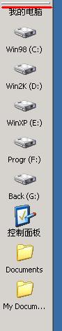 一开机就如此,屏幕左边一条区域,最顶上是我的电脑,下面依次是C盘、D盘、E盘、F盘、G盘...怎么办啊?