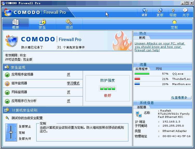 comodo就是典型的牺牲性能换取安全 还不如用jetico