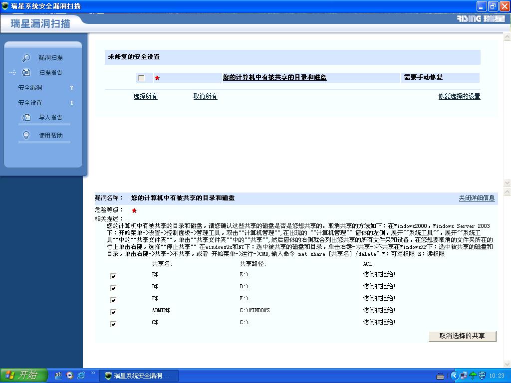 不要用瑞星,手动到分区下的共享栏里取消~