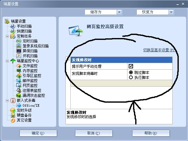 我不理解这段话,在瑞星设置,网页监控高级设置上,发现脚本病毒时,瑞星原来设置的是执行脚本,我不懂了,有病毒还要执行病毒啊?那还要杀毒软件干什么?还是我理解错误,该怎么设置呢?是跳过还是执行?