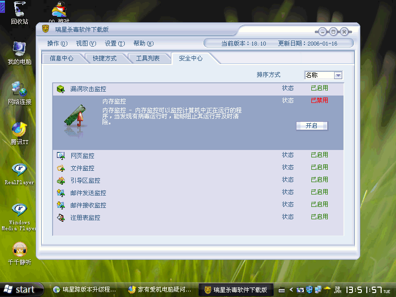 哪位大侠知道为什么我这次更新好2007瑞星,内存监控怎么打不开了,是我电脑原因还是瑞星问题?