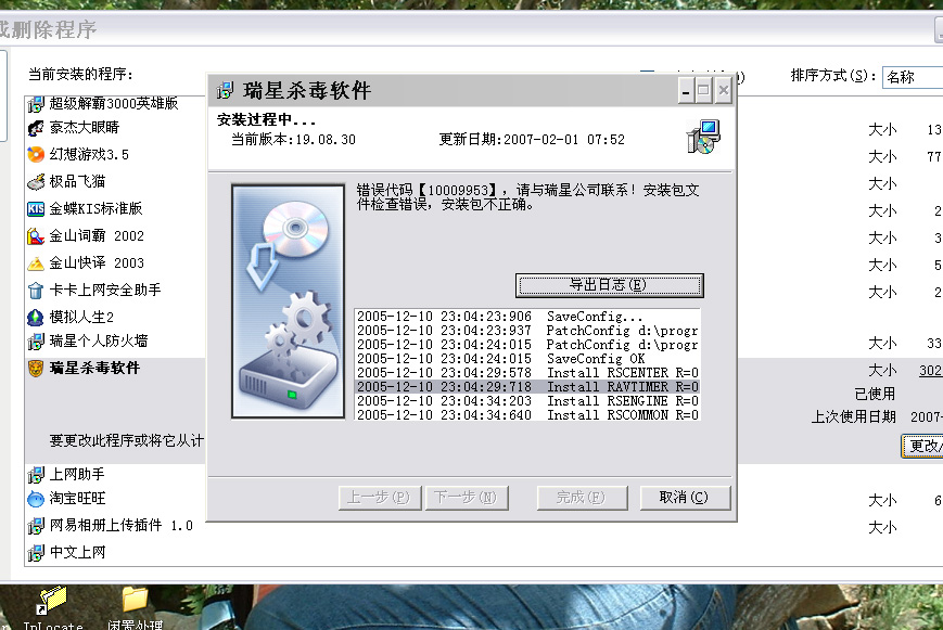 找了一下,瑞星客户服务中心有个关于《提示错误代码【10009953】的解决方法》