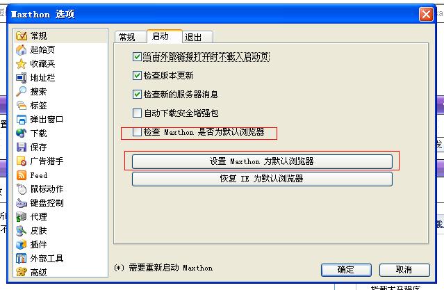 把检测MAXTHON是否为默认浏览器 选项去掉