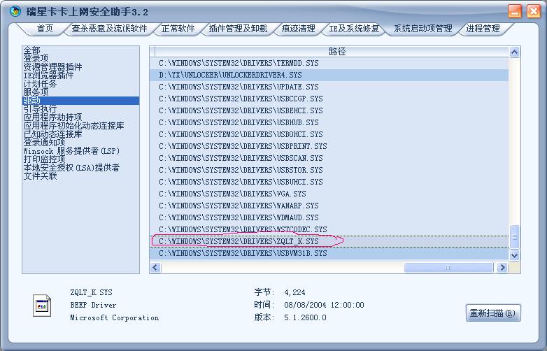 O4 - 启动项HKLM\\Run: [RfwMain] "C:\Program Files\Rising\Rfw\rfwmain.exe" -Startup