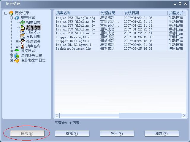 【求助】请问如何删除瑞星杀毒软件历史杀毒记录啊??