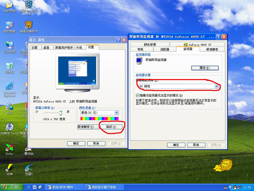 显示器是LCD的还是CRT的?刷新只有65hz?你升级一下显卡驱动试试看;还有CRT的显示器有时还会因为摆放的位子受磁场干扰产生摆动;最后就是显示器的质量问题。