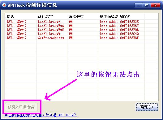 RVA  错误: GetProcAddress (危险等级: 高,  被下面模块所HOOK: Dest Addr: 0xF2762E8F)