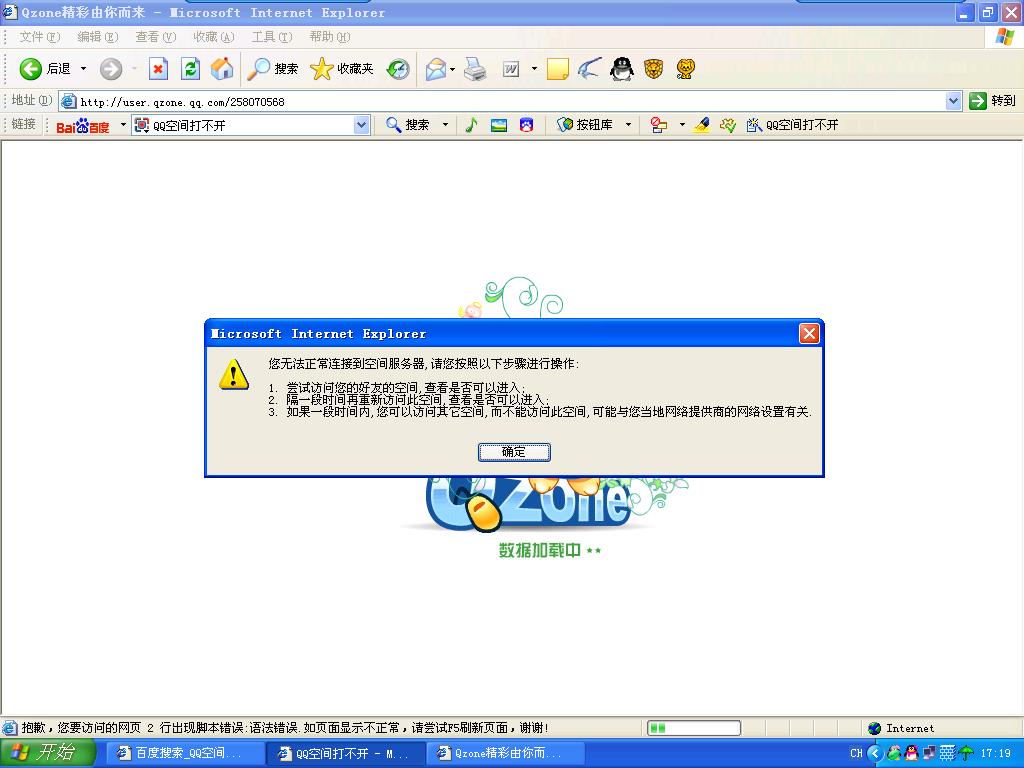 今天我自己空间打不开了 点击好友的都能打开 怎么回事 [img][/img]