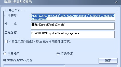 然后瑞星杀毒软件也出现一个 修改注册表的提示:C:\WINDOWS\system32\dumprep.exe