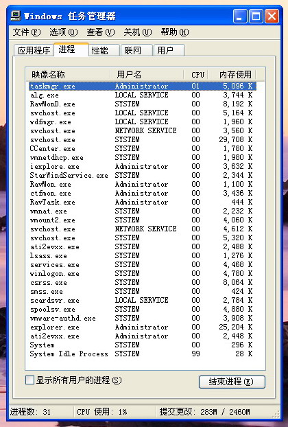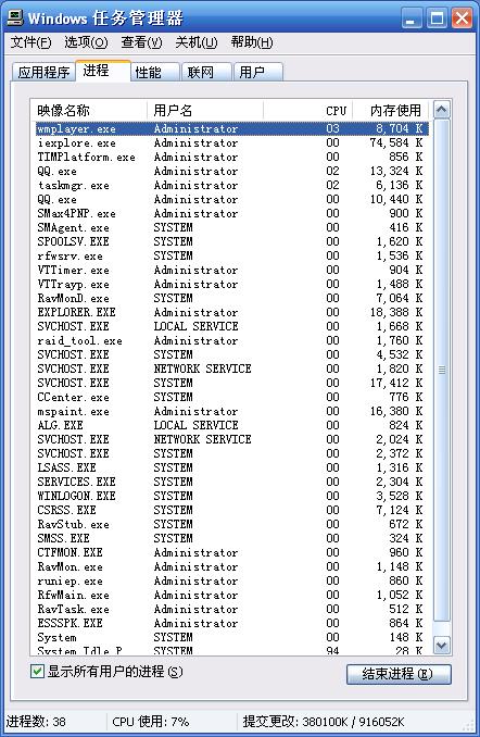 突发奇想:如果你认为你的系统是正常的话(或比较正常),请把你的任务管理器贴图发上来。请大家发图的时候最好把图展开!这样做的目的是:一方面可以供那些认为自己的机子有问题的人做个参考,另方面也可以让别人来发现你自己的问题。不知大伙可否支持???