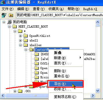 要备份某个注册表中的键值就用鼠标指到该键值上击右键选择导出并保存到指定的位置即可参见下图
