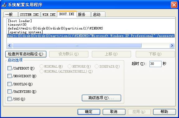 我的是单XP系统,以下BOOT.INI内容可参考: