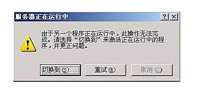 关机时出现此对话框:“服务器正在运行中,由于另一个程序正在运行中,此操作无法完成。请选择“切换到”来激活正在运行中的程序,并更正问题服务。”