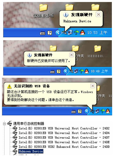 这几天我的机子无法识别我的2个U盘(朗科、联想)了,过格式化后仍然无法识别,别人的U盘在我机子上可以识别,我的U盘在别人的机子上也能识别,就是在我自己的机子上不能识别!U盘插入后在设备管理器中通用串行总线控制器下会出现一个Unknown Device的东西,而且U盘拔出后仍然存在,下次启动机子时这东西也还在,即便将其卸载,重启后还会出现!晕!请老大们帮忙看看是什么原因,提供一个解决办法,谢谢!