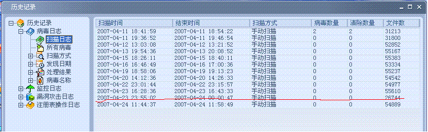 瑞星查毒,连续查同一盘,查杀文件数量减少很多.