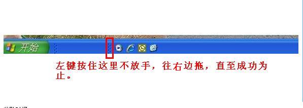 问一个很菜的问题:如何将任务栏中的快速启动调到紧靠“开始”处,现在快速启动栏的左面有个空栏,一打开页面就出现在那里,过去都是在快速启动栏的右面。